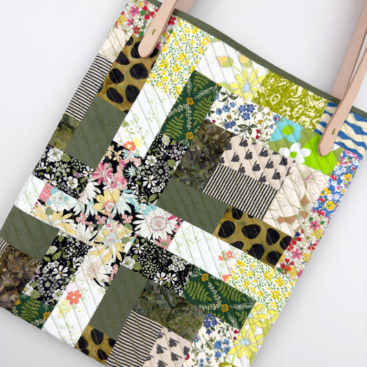 SLIM TOTE IN GARDEN PATCHWORK