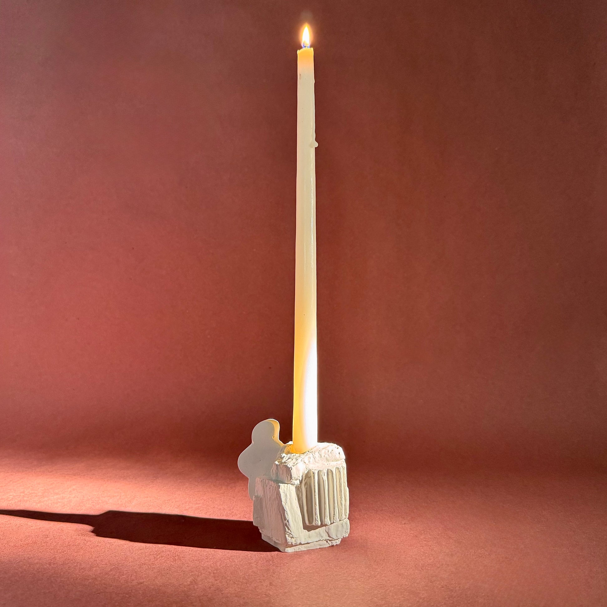 STANDING STONE CANDLESTICK - SCULPTURE WHITE